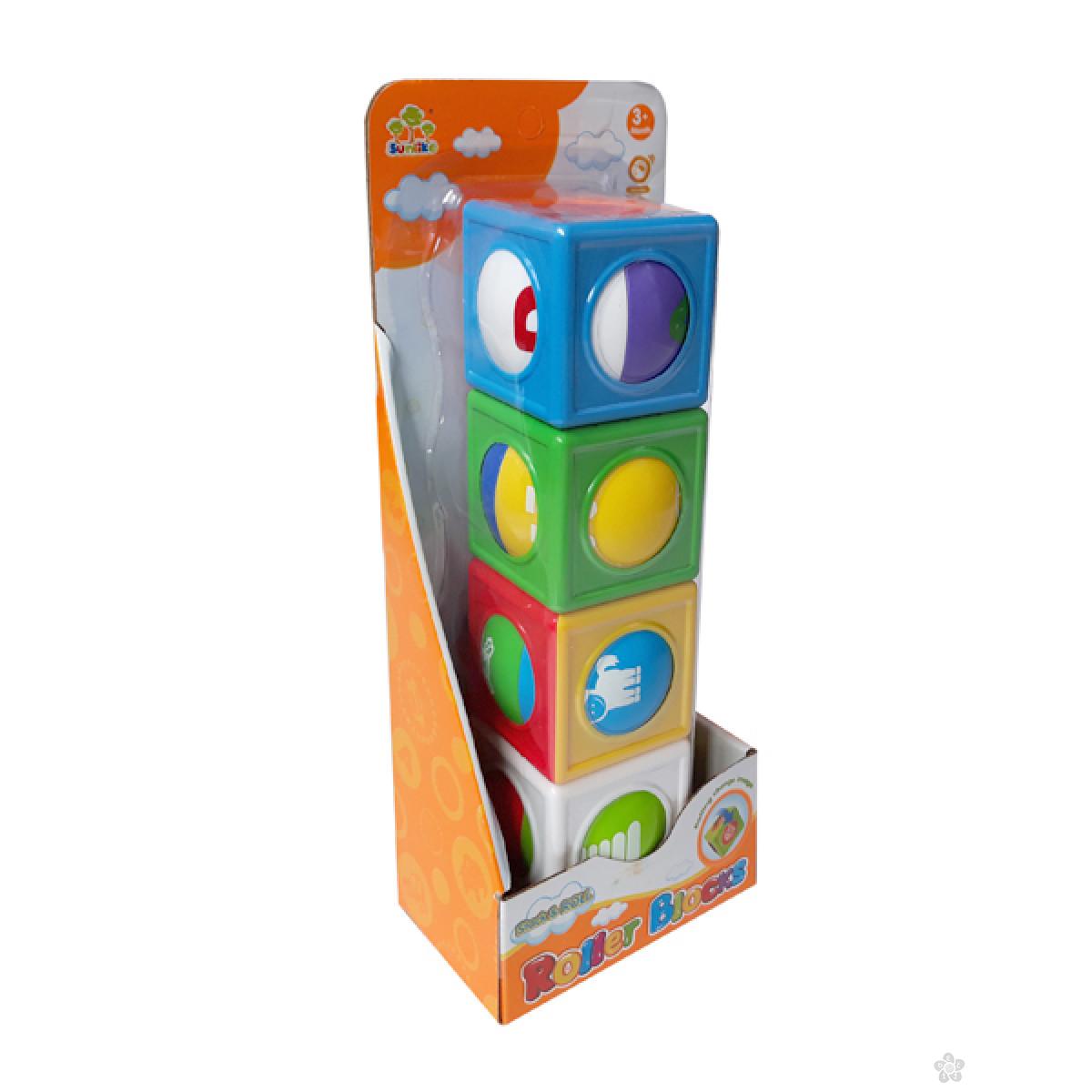 U setu se nalaze 4 kocke sa različitim motivima: motiv slova, prevoza, predmeta i životinja.