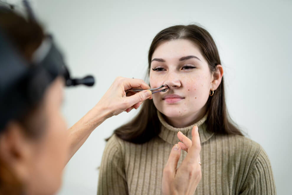 Foto: alpenpharma. rs, yayimages-Tomashevska-43693316_otolaryngology-concept-positive-woman-otorhinolaryngologist-checking-nose-with-otoscope-of-his-patient-at-hospital-nasal-congestion-sinusitis-allergy-concept-female-patient-at-modern-ent-clin