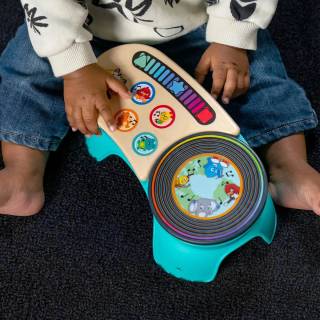 Napravite muziku, istražujte zvukove i učite ritam sa Baby Einstein + Hape DJ Discovery Magic Touch gramofonom. Sa 50 melodija i zvukova, beba može dati svoj lični pečat pesmama i razvijati fine motoričke veštine. Beba će uživati u plesu i istraživanju muzike uz ovu muzičku igračku koja nagrađuje bebinu radoznalost svakim dodirom i okretanjem. Tehnologija Magic Touch olakšava bebi stvaranje muzike i podstiče otkrivanje uzroka i posledica. Napravljen od sertifikovanog drveta, beba može pauzirati i puštati prethodno snimljene melodije, mešati melodije ili okretati ploču da ubrza tempo - baš kao pravi DJ!